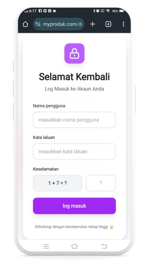 Mempunyai Login page berciri keselamatan