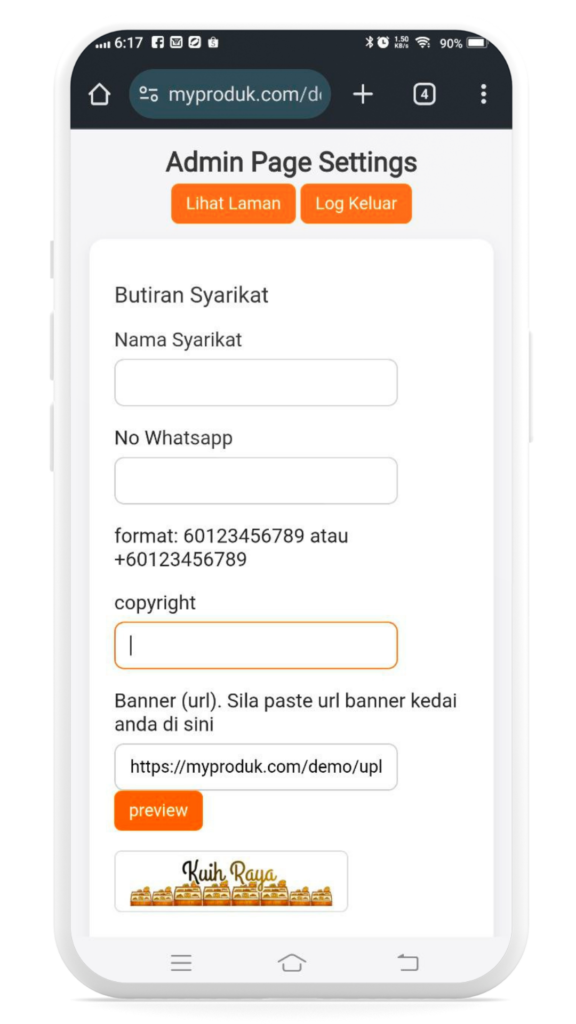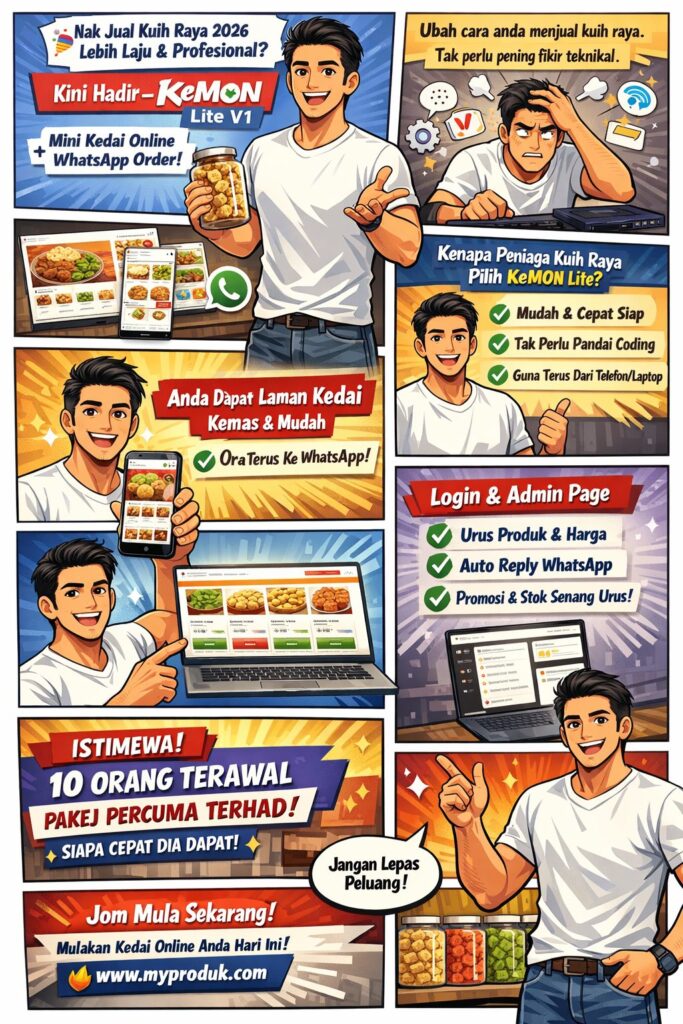 Sistem kedai mini online untuk anda jual kuih raya tahun 2026.
